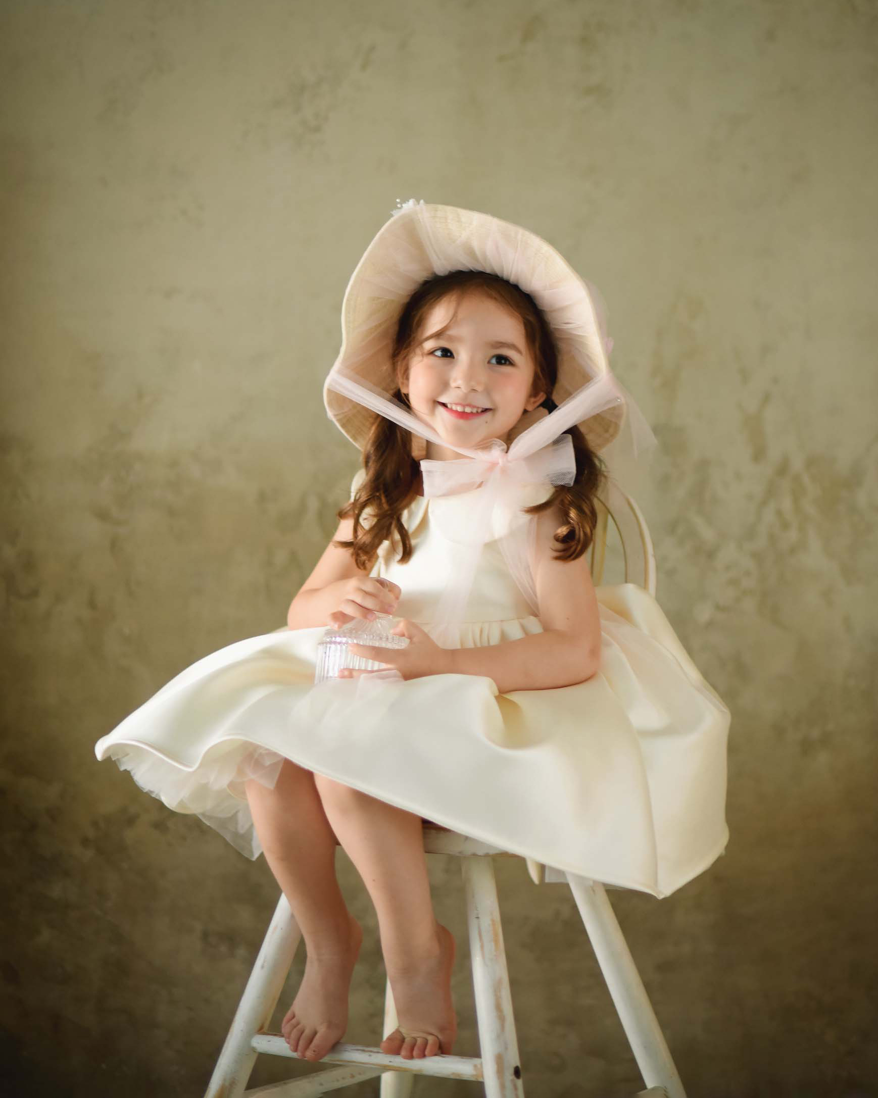 귀여운 크림 컬러의 클래식 미카도 드레스입니다.