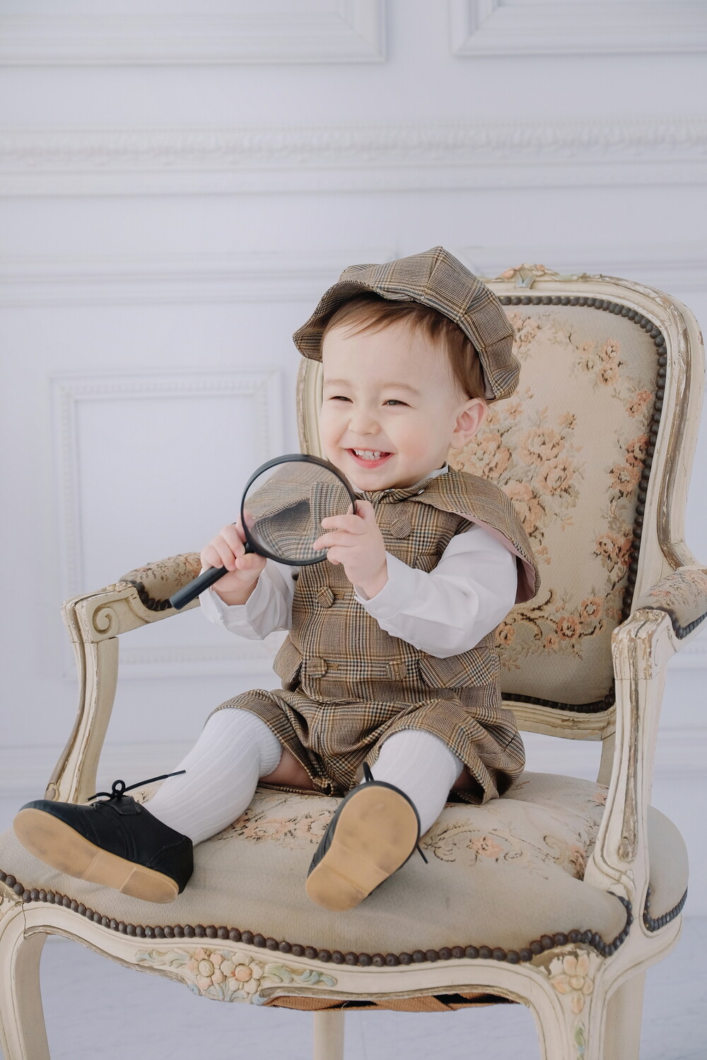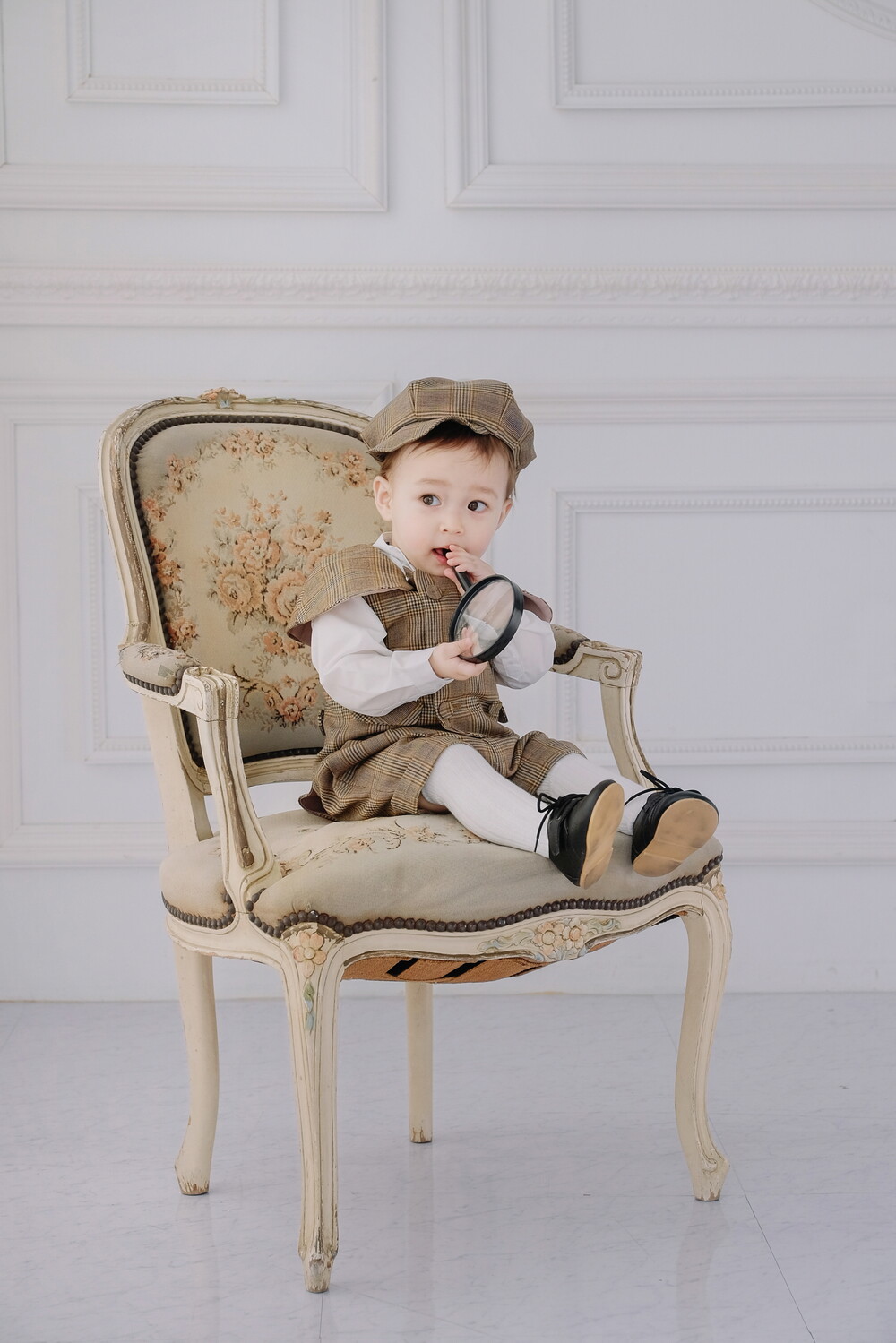 귀여운 아기탐정같은 베이비 셜록홈즈 수트입니다.
