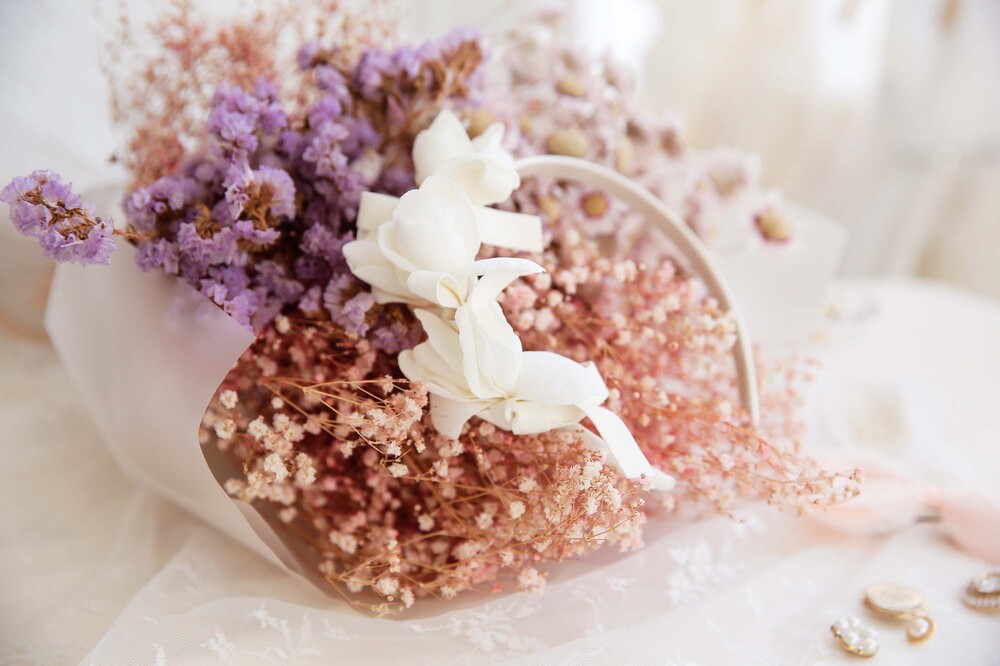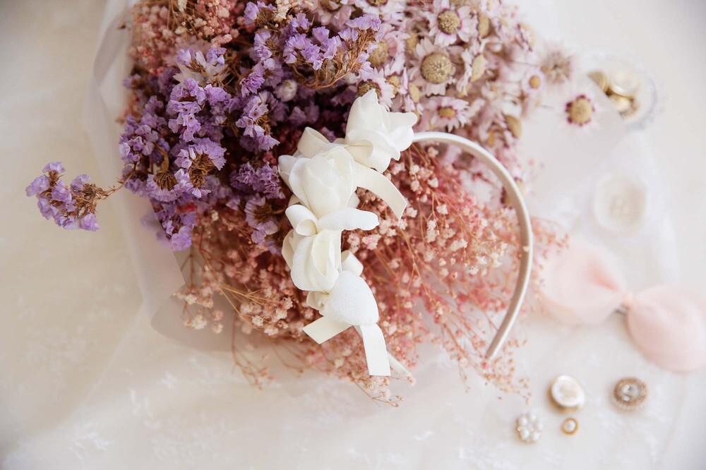 부드러운 화이트와 핑크 컬러로 돌잔치, 결혼식 화동용 헤어는 물론