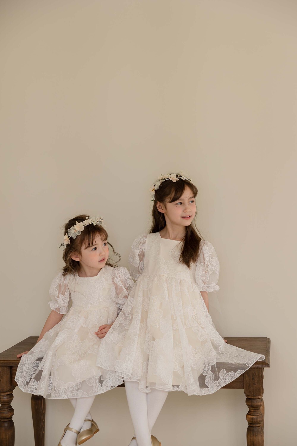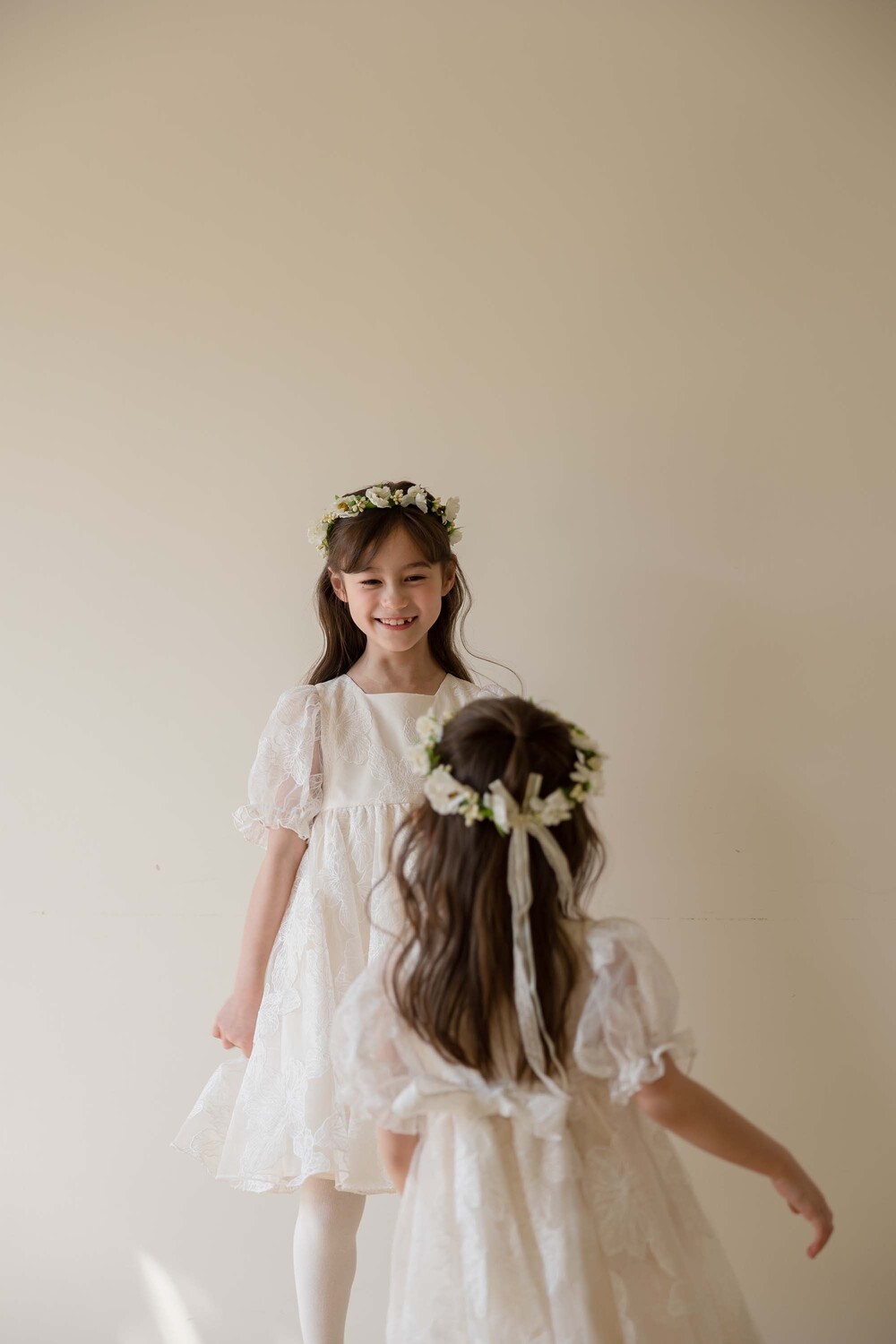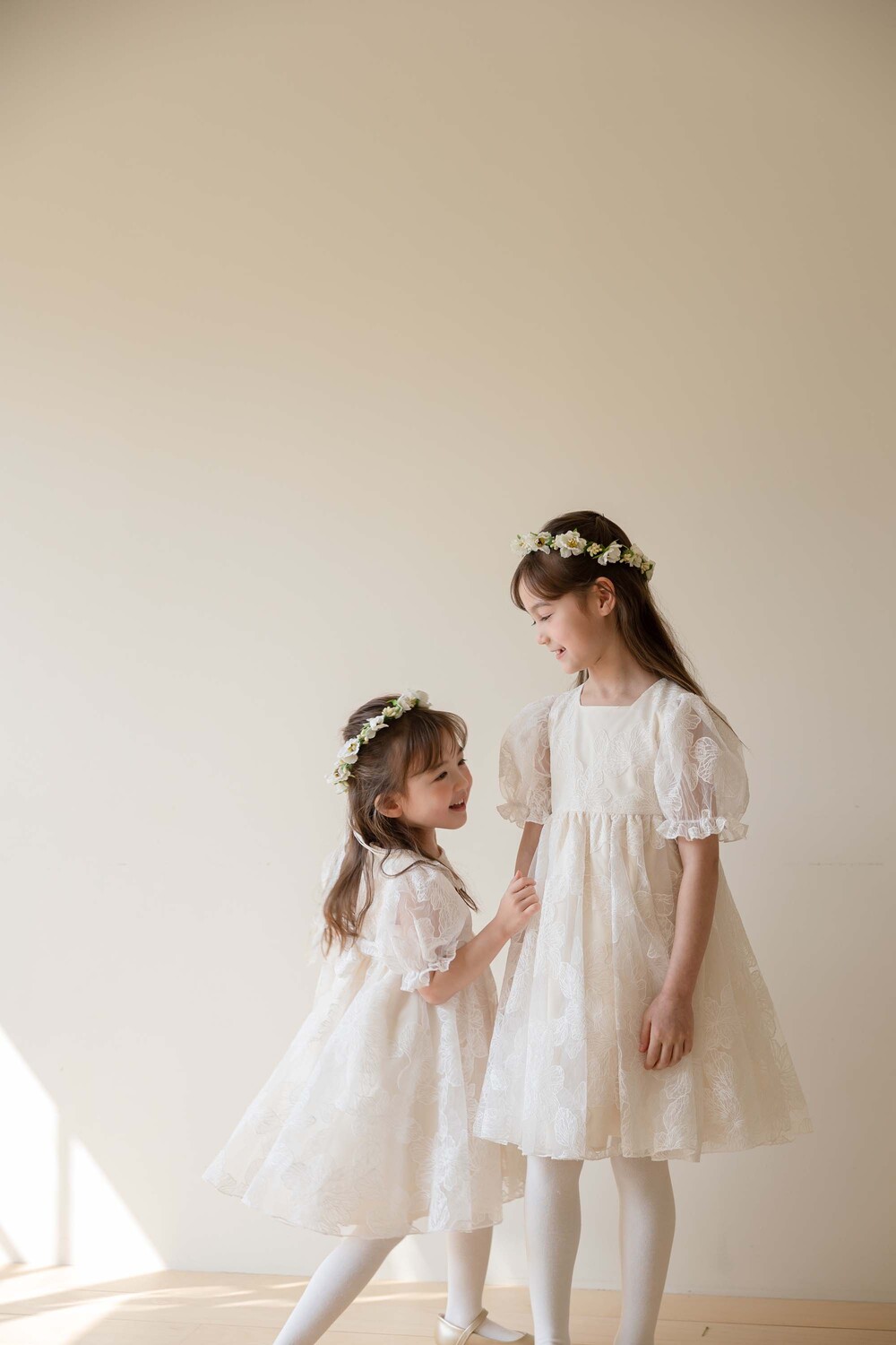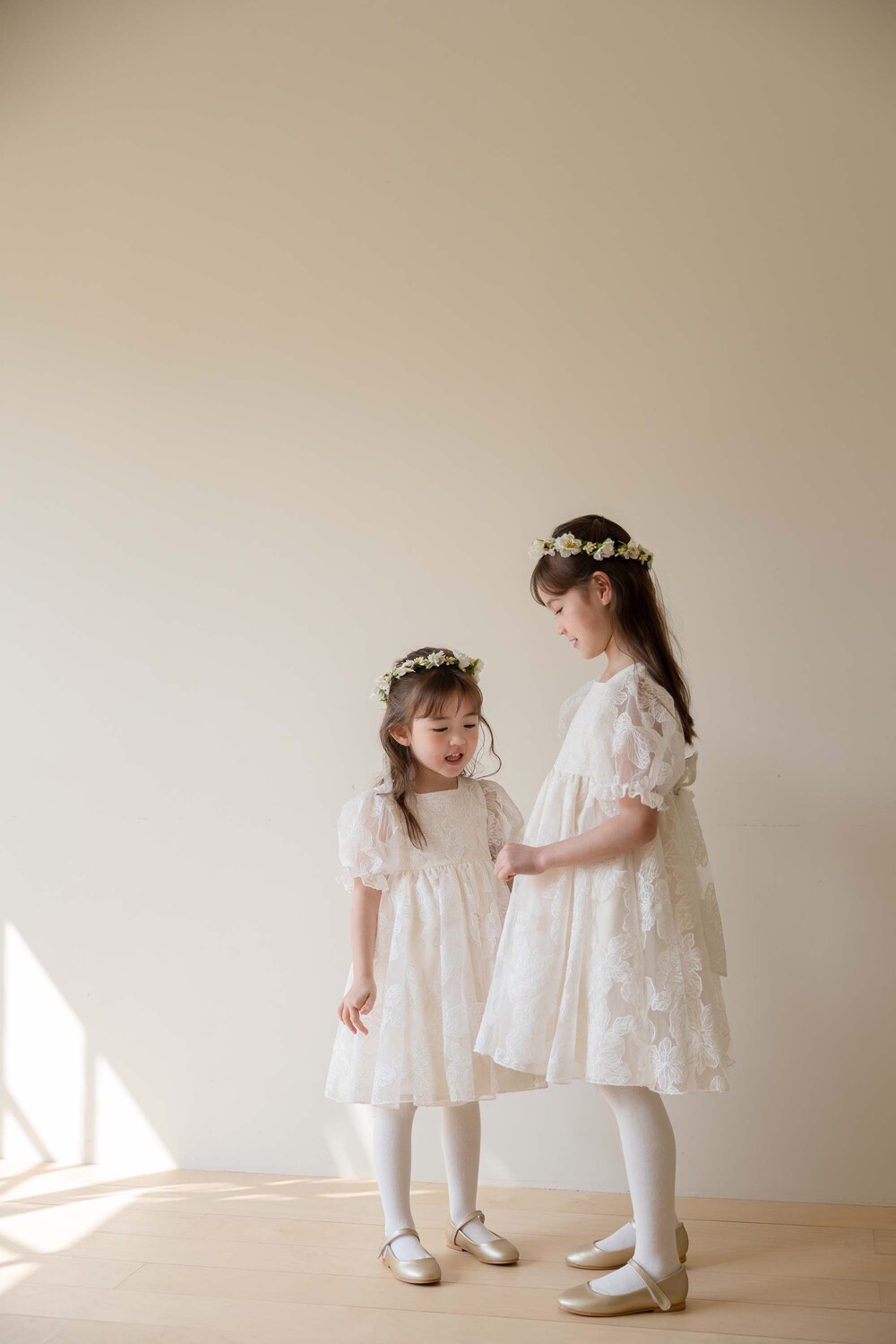 탄탄한 레이스는 퍼프 소매는 봉긋하게, 스커트는 자연스럽고 힘 있게