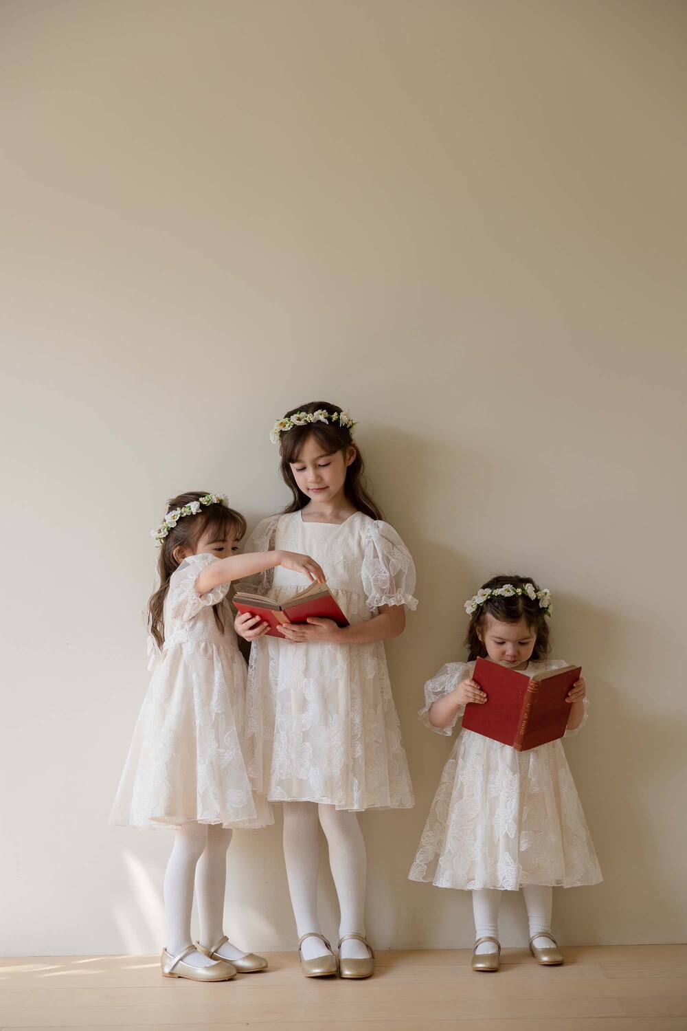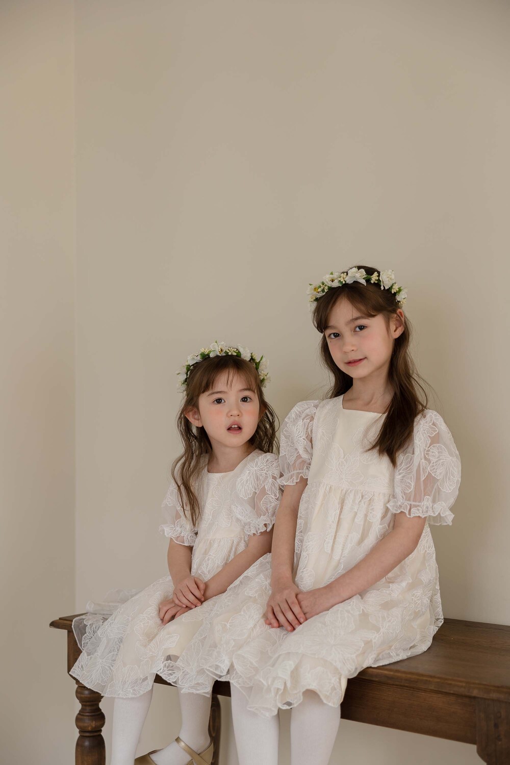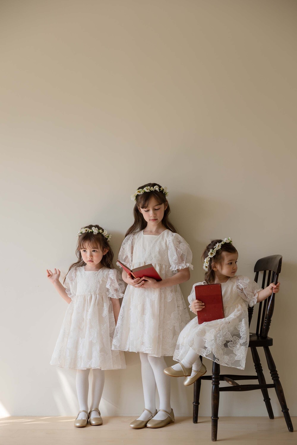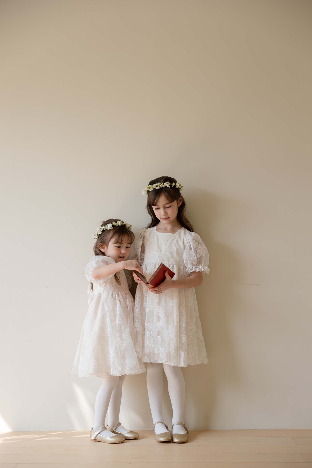 탄탄한 레이스는 퍼프 소매는 봉긋하게, 스커트는 자연스럽고 힘 있게