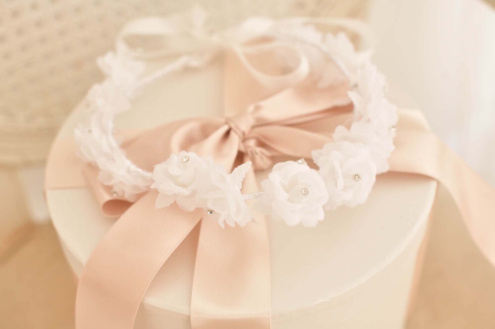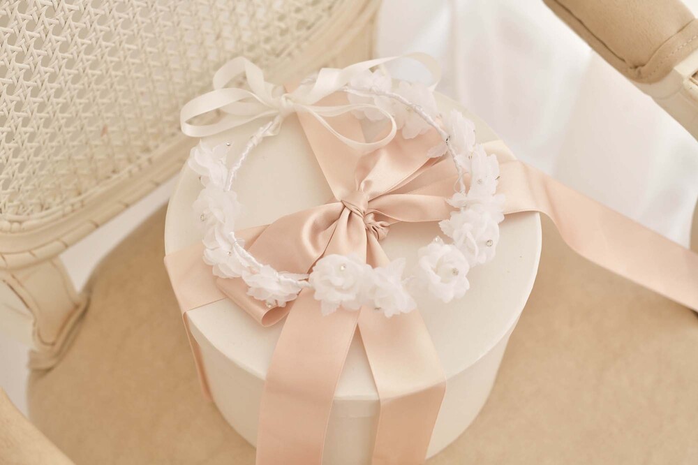깨끗한 화이트 로즈 장식에 큐빅을 더하여