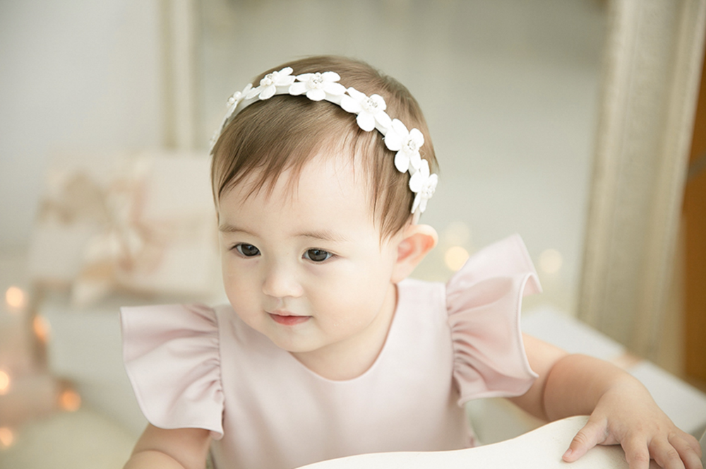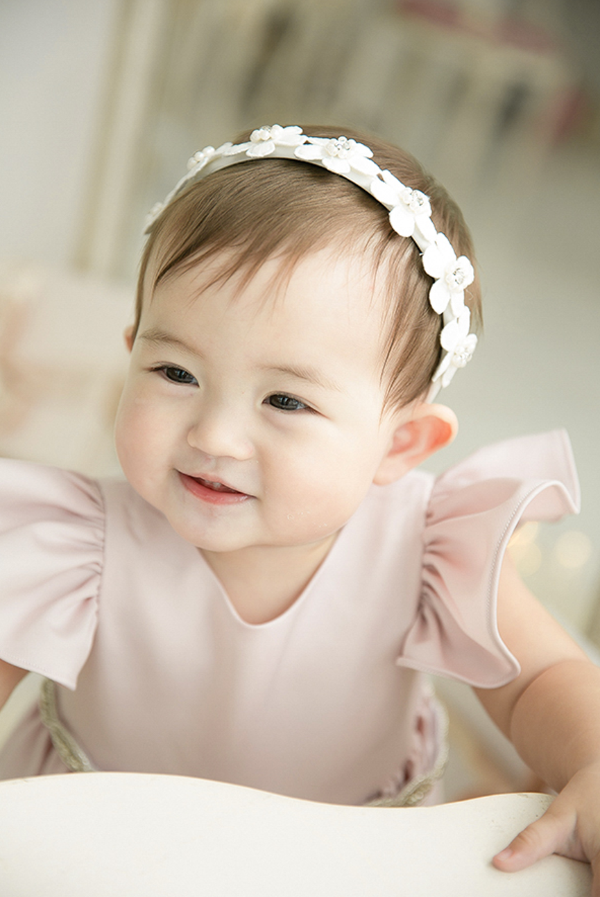 탄탄한 플라워 레이스가 헤어라인을 감싸는 모양이 사랑스럽습니다.