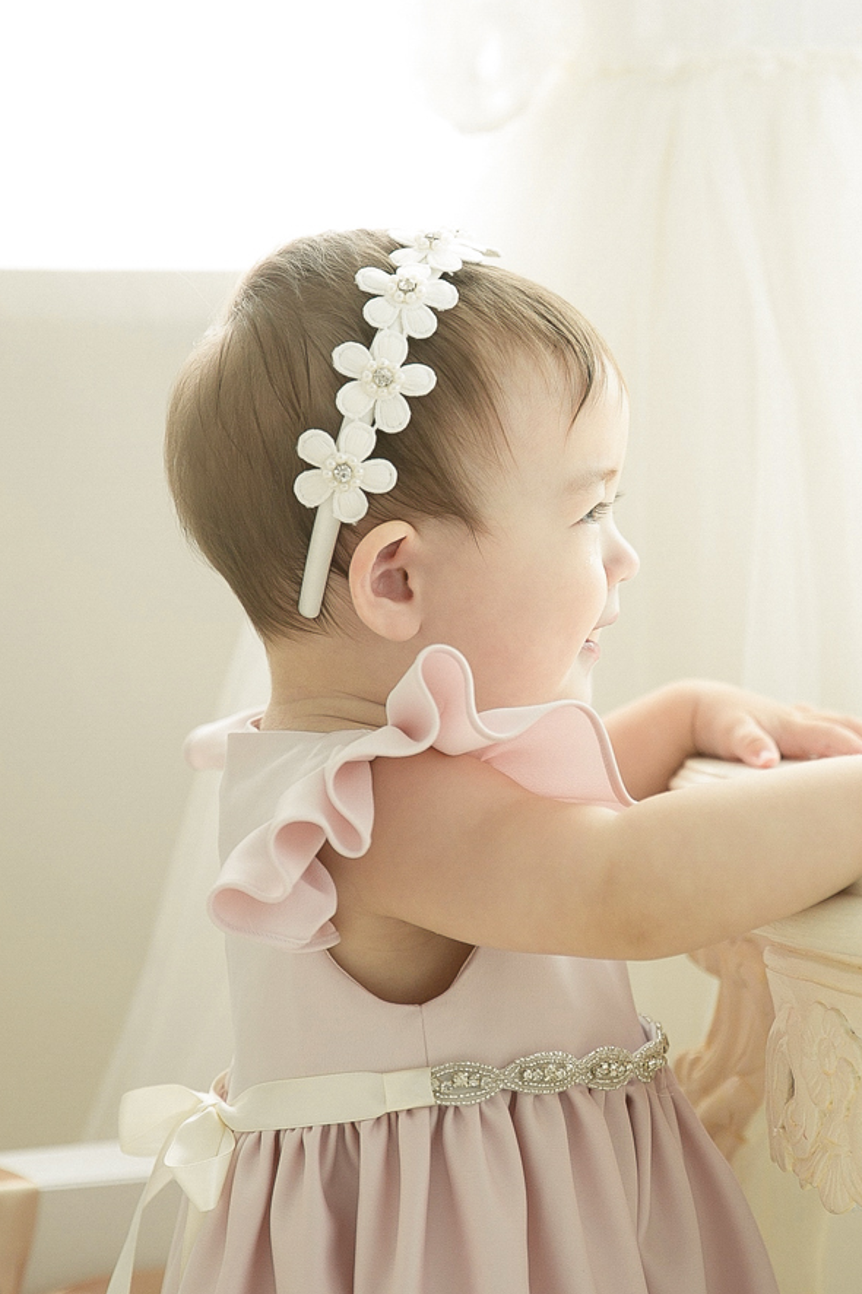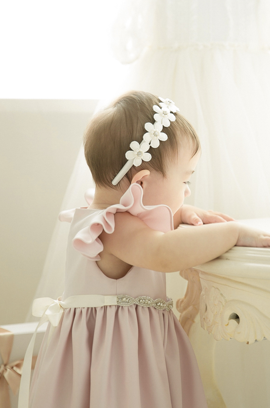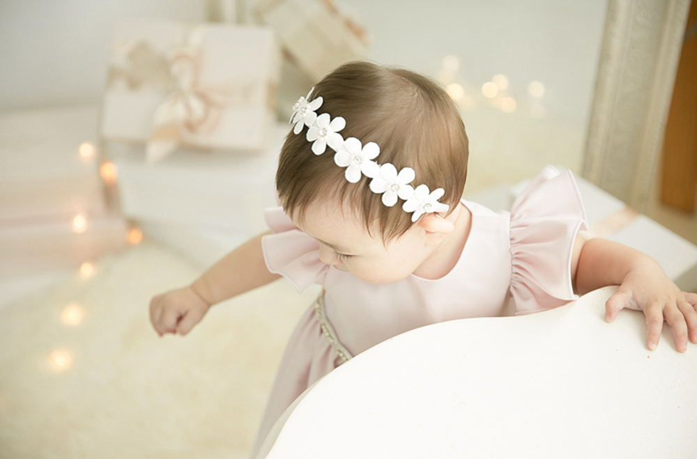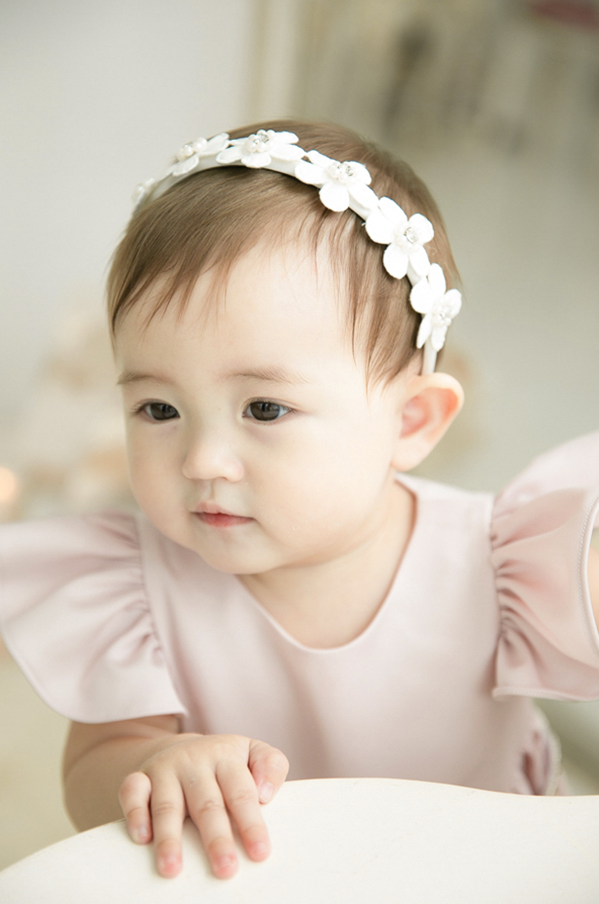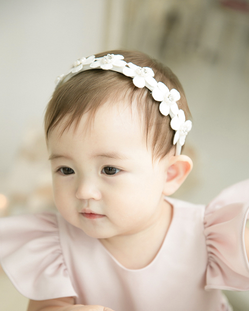 하얗고 동글동글한 플라워 레이스와 중앙을 장식한 큐빅이 귀여운