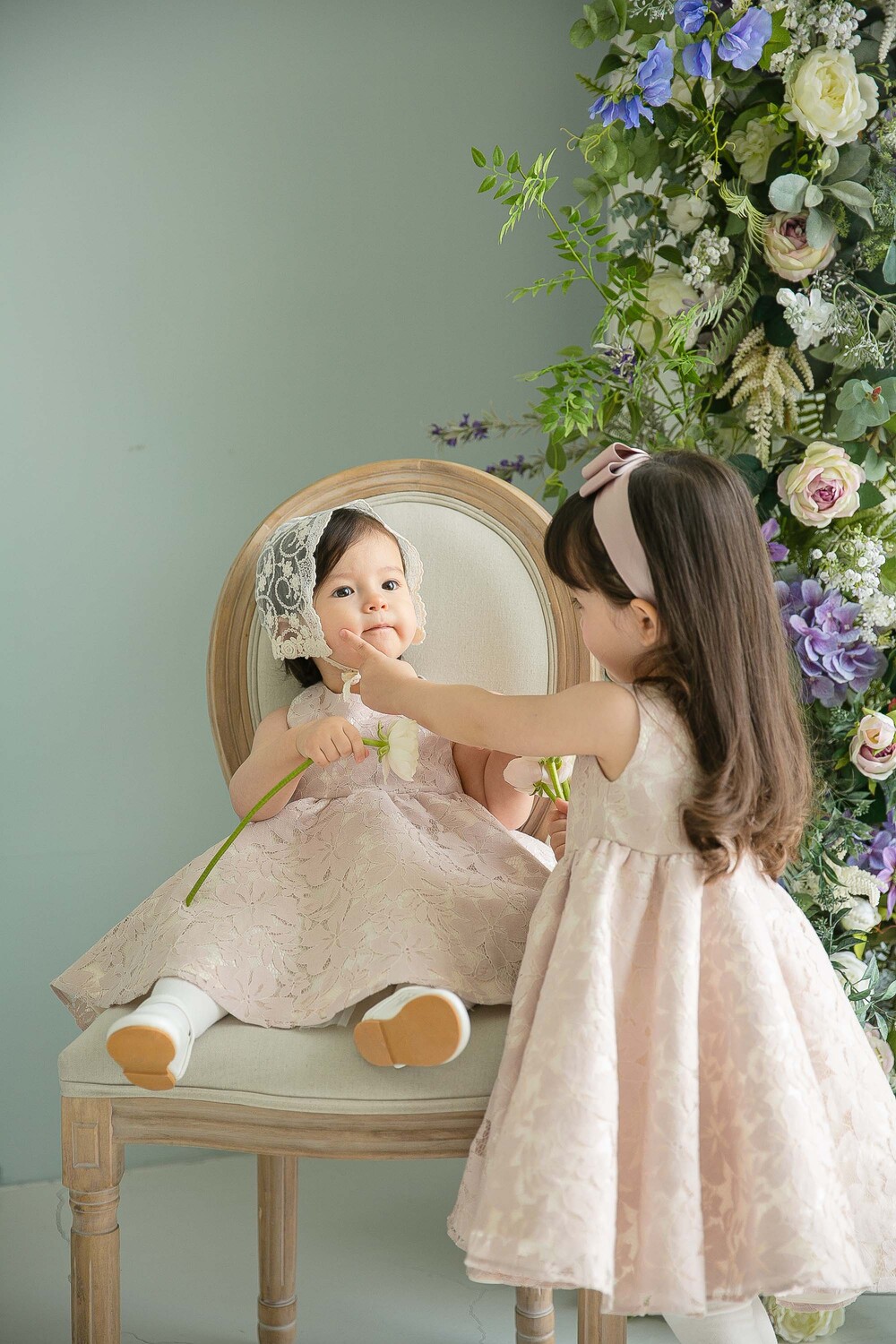 핑크베이지의 레이스로 사랑스럽고 우아한 분위기를